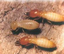 | 鏟頭堆砂白蟻 | 頭部近方形,赤褐色;額部呈坡面,與上鄂交角遠(yuǎn)大于90゜似鏟形 | 扁平,與頭部等寬或?qū)捰陬^部 | 蛀食木材,蛀蝕通道即為巢,糞便似小砂粒,跌落地面似堆砂 | 木棲 | 危害堅(jiān)硬家具、門窗、踢腳板及堅(jiān)硬樹木如荔枝、龍眼等 |